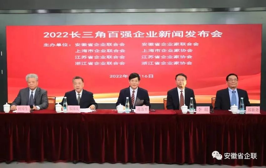 11月16日下午,由安徽省企業聯合會、安徽省企業家聯合會、上海市企業聯合會、上海市企業家協會、江蘇省企業聯合會、江蘇省企業家協會、浙江省企業聯合會和浙江省企業家協會共同主辦的2022長三角百強企業新聞發布會在上…